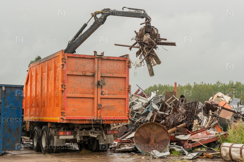 Погрузка металлолома гидравлическим краном, для вторичной переработки. Концепция развития вторичного сырья