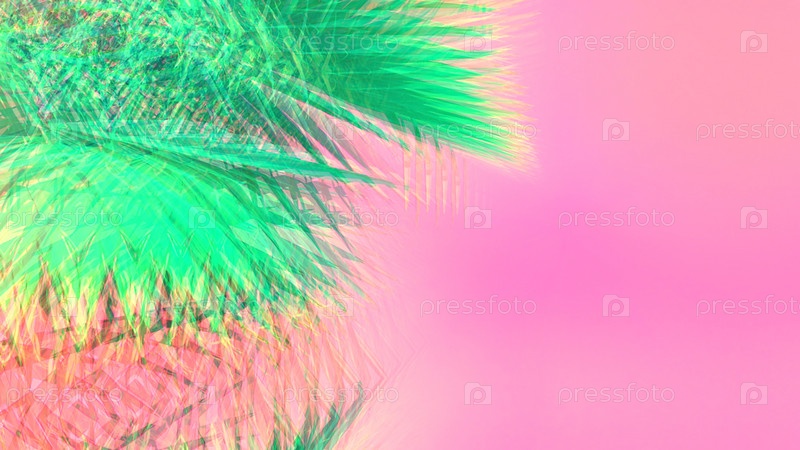 Абстрактный градиент розовый фон с пальмовыми листьями