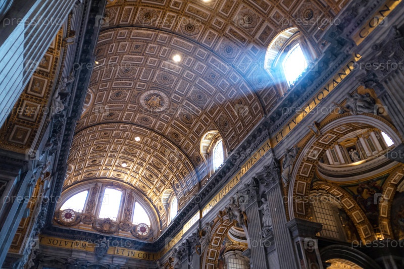 РИМ - 31 марта 2019 г.: Внутри собора Святого Петра или Сан-Пьетро в Ватикане, Рим, Италия. Панорама роскошного интерьера эпохи Возрождения. Святой Петр – одна из главных достопримечательностей Рима