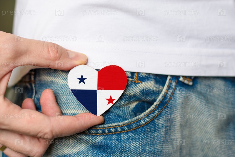 Деревянный значок с панамским флагом в форме сердца в мужской руке