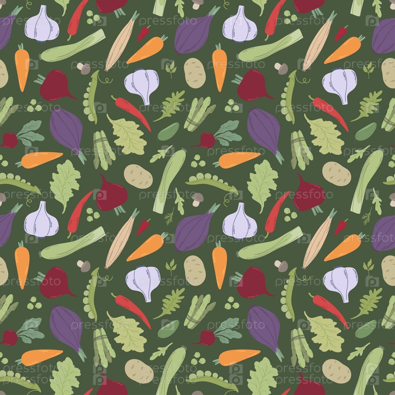 Бесшовный узор с цветными овощами на темном фоне
