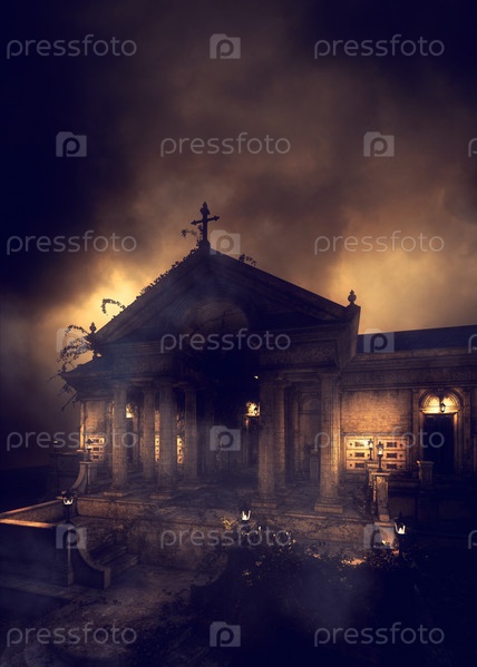 3D Старое здание гробницы ночью