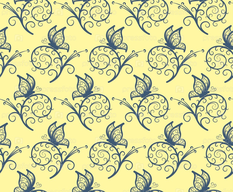 Бесшовный фон с бабочкой и растением