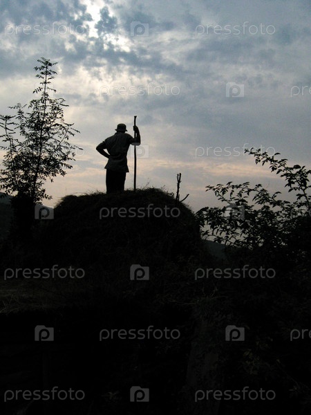 Силуэт мужчины на стоге сена