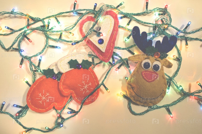 Новогодние игрушки из фетра с гирляндой