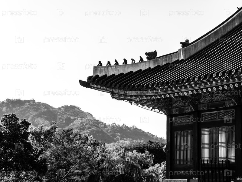Корейская традиционная крыша. Дворец Кенбоккун. Сеул, Южная Корея