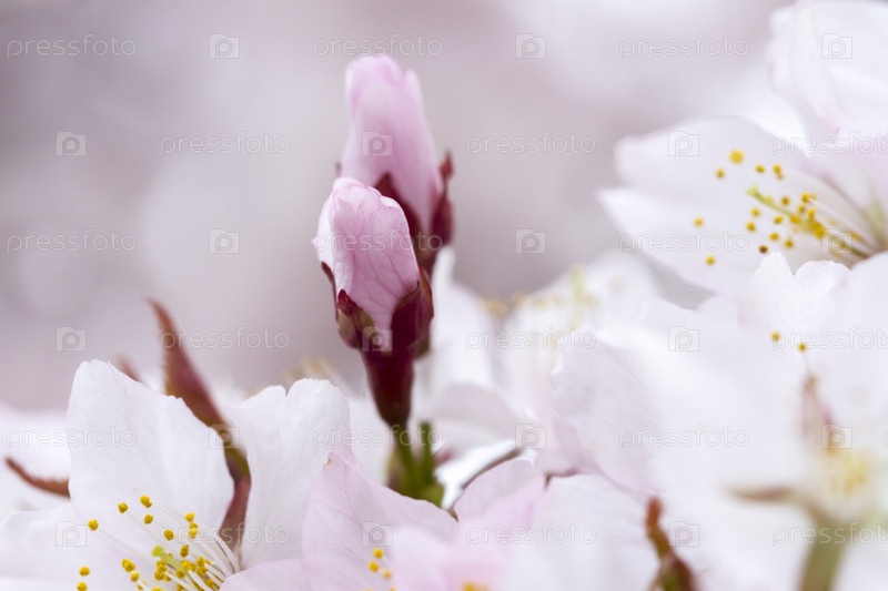 Цветы японской сакуры весной. Изображение макроса. Мягкий, нежный, розовый, цветочный фон