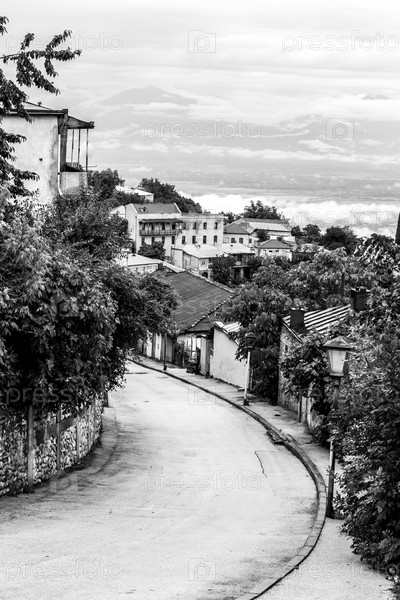 Улица в городе Сигнахи (Сигнаги) в Грузии. Черно-белое изображение