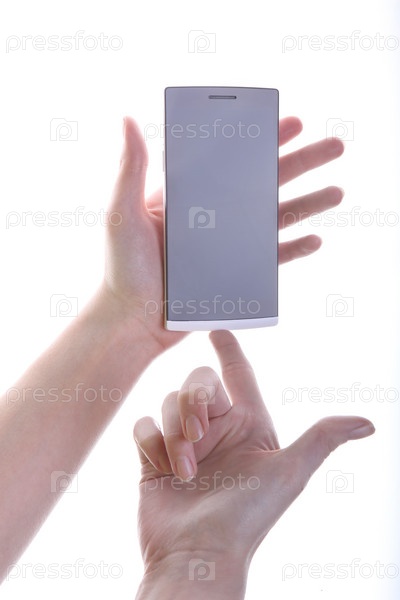 Смартфон в женских руках изолирован