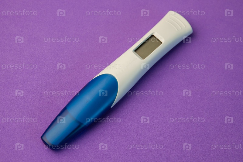 Синий и белый цифровой тест на беременность на фиолетовом фоне