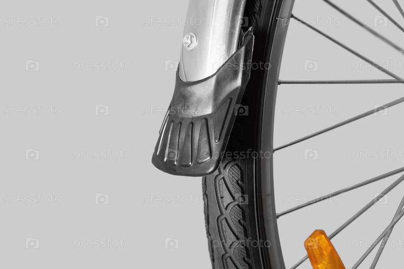 Переднее велосипедное колесо. Крупный план. Изолированные на белом фоне