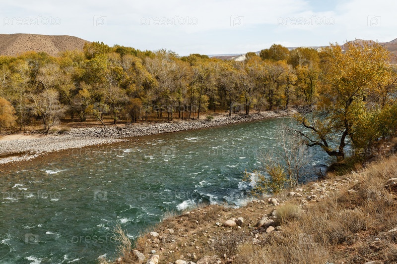 Река Кокемерен в Нарынской области Кыргызстана, осенний пейзаж