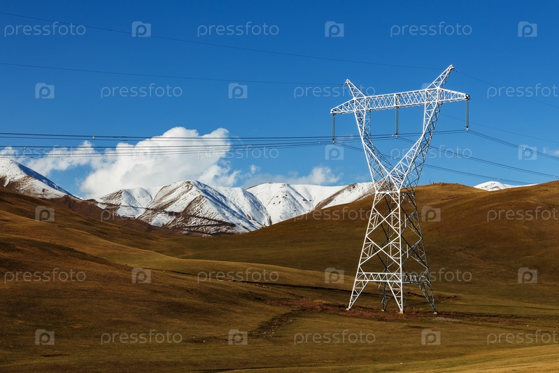 Опора электричества в горах. ЛЭП в горах Киргизии в Нарынской области