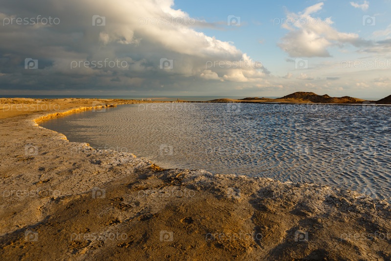Водное озеро в долине вулканов Гобустана недалеко от Баку, Азербайджан