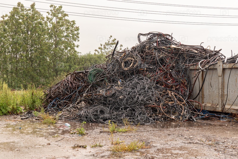 Металлолом на площадке готовый к переработке. Промышленный объект для сбора и переработки металлолома. Концепция вторичных ресурсов