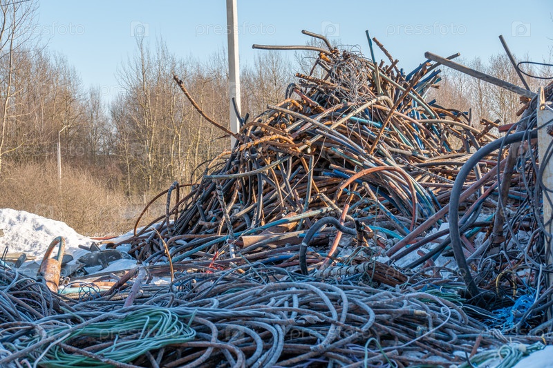 Металлолом на площадке готовый к переработке. Промышленный объект для сбора и переработки металлолома. Концепция вторичных ресурсов