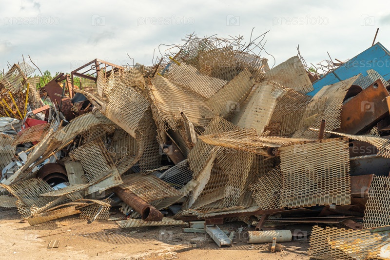 Металлолом на площадке готовый к переработке. Промышленный объект для сбора и переработки металлолома. Концепция вторичных ресурсов