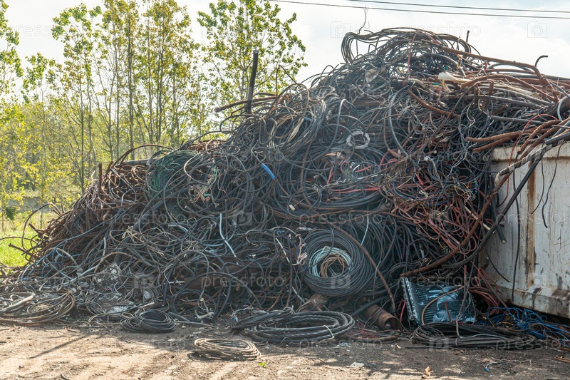 Металлолом на площадке готов к переработке. Промышленный комплекс по сбору и переработке металлолома. Концепция вторичных ресурсов