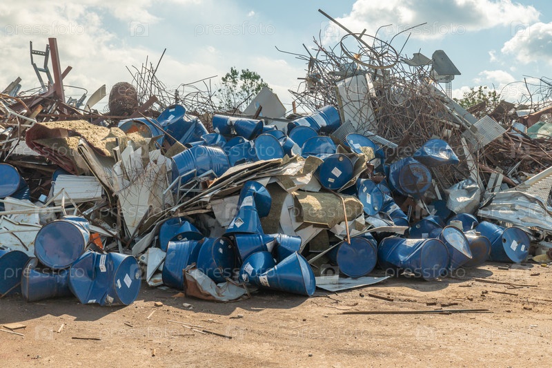 Металлолом на площадке готовый к переработке. Промышленный объект для сбора и переработки металлолома. Концепция вторичных ресурсов