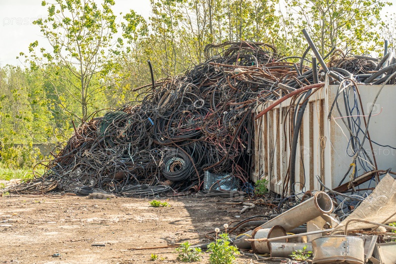 Металлолом на площадке готовый к переработке. Промышленный объект для сбора и переработки металлолома. Концепция вторичных ресурсов