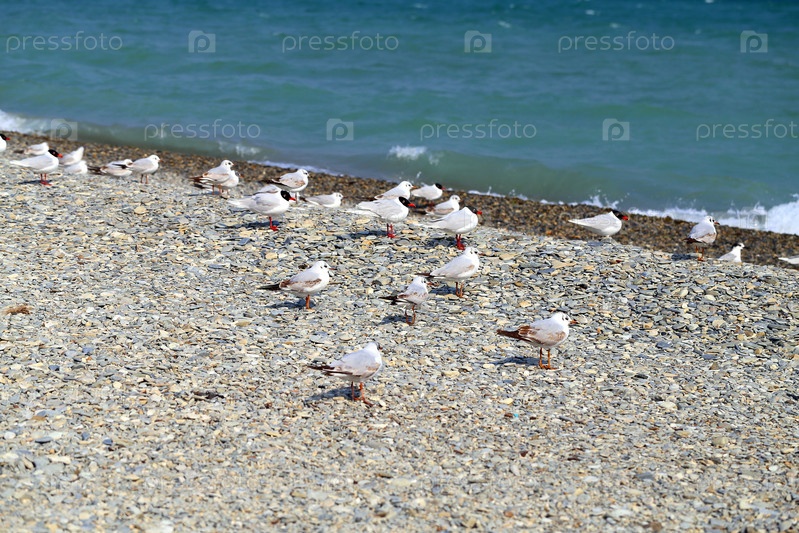 Чайки фотографируются крупным планом на побережье Черного моря