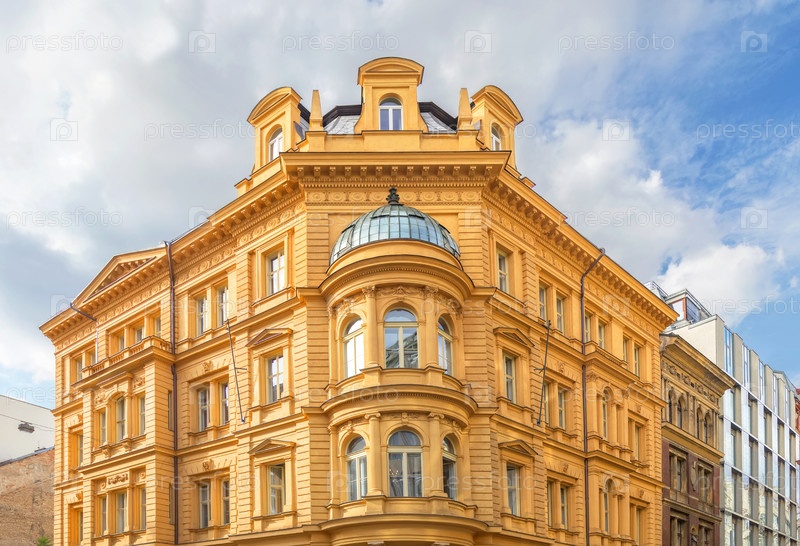 Красивый традиционный дом в Праге. Чешская Республика