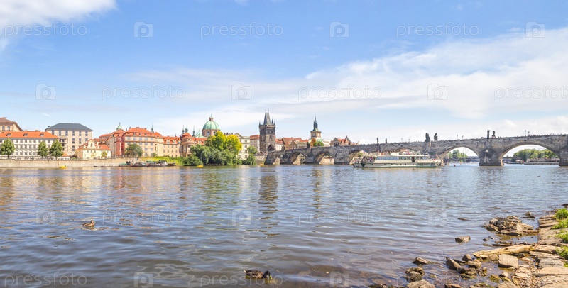 Вид на Карлов мост и реку Влтаву. Прага, Чехия
