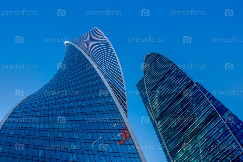 Москва, Россия - 02 февраля 2021 г.: Башня "Эволюция". Экстерьер небоскреба. Московский международный деловой центр