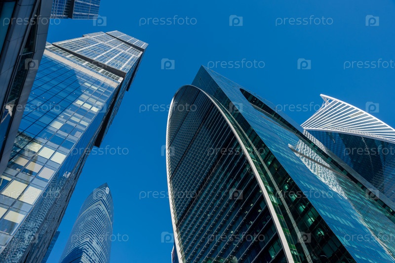 МОСКВА, РОССИЯ - 02 февраля 2021 г.: Москва в солнечный зимний день. Деловой район Москвы в синих тонах зимних огней. Солнечный день в большом городе