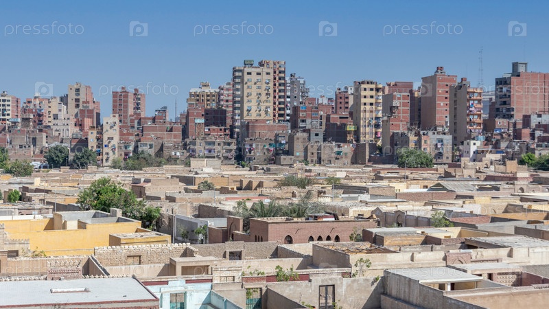 Каир, Египет - 13 апреля 2021 г.: Вид на город Каир с плотно упакованными жилыми домами и зданиями