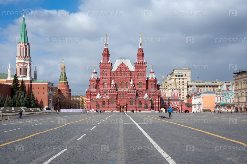 Москва, Россия - 23 марта 2020 г.: Панорама Красной площади без туристов в Москве, Россия