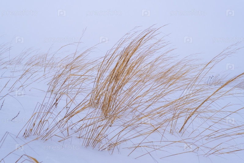 Полевые травы в зимнем поле под снегом. Фото высокого качества