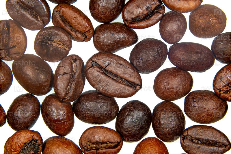 Жареные кофейные зерна, выделенные на заднем плане в составе