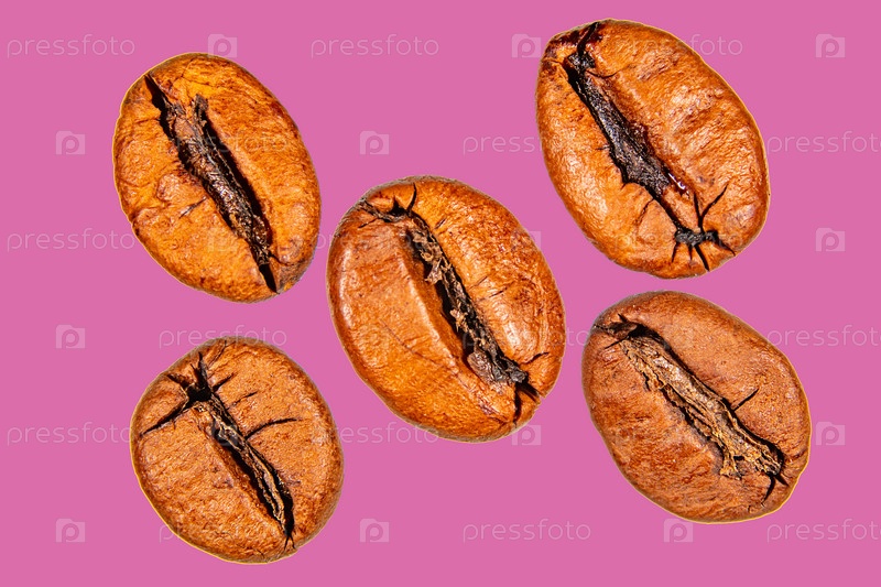 Жареные кофейные зерна, изолированные на фоне в композицию