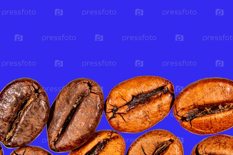 Жареные кофейные зерна, выделенные на заднем плане в составе