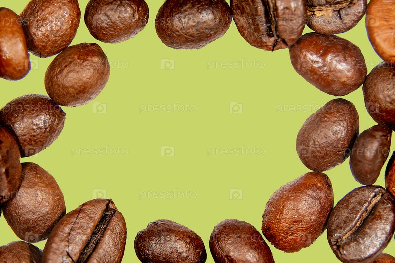 Жареные кофейные зерна, изолированные на фоне в композицию