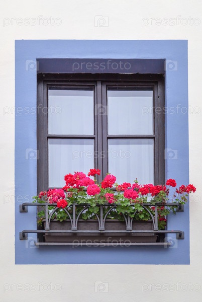Крупный план красивого окна с цветами