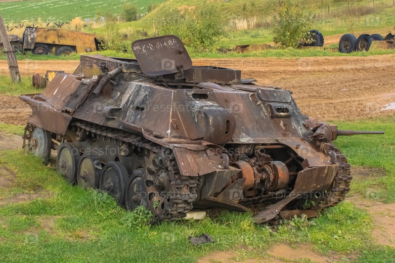 Старый сломанный танк модели Второй мировой войны ржавеет в поле