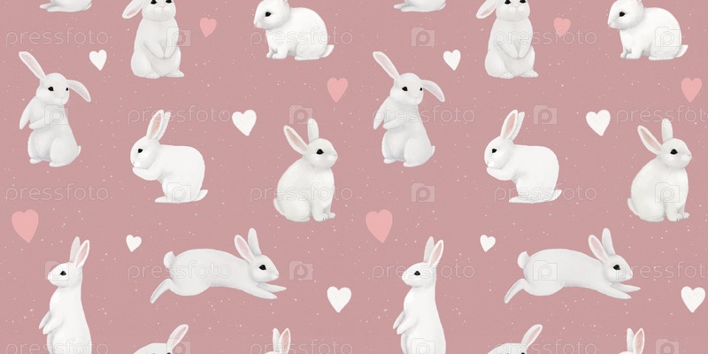Симпатичные белые кролики и кролики. Нежный детский принт. Смешные персонажи. Выкройка для детских тканей, одежды, постельного белья, товаров, обоев