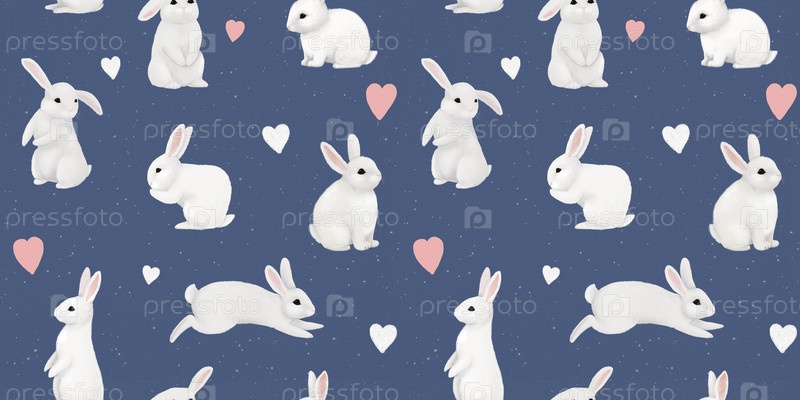 Симпатичные белые кролики и кролики. Нежный детский принт. Смешные персонажи. Выкройка для детских тканей, одежды, постельного белья, товаров, обоев