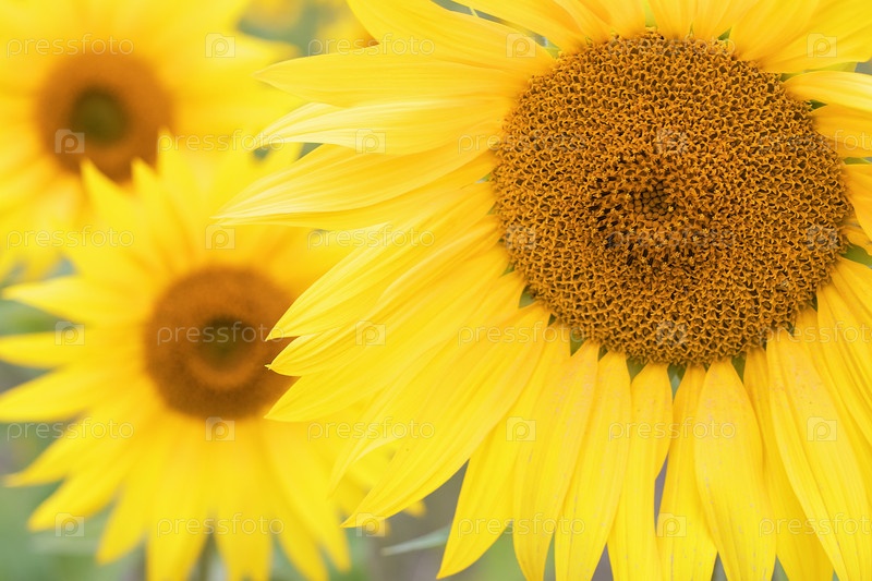 Естественный фон подсолнечника. Цветущий подсолнух. Крупный план подсолнуха. на фоне размытого фона скопируйте пространство