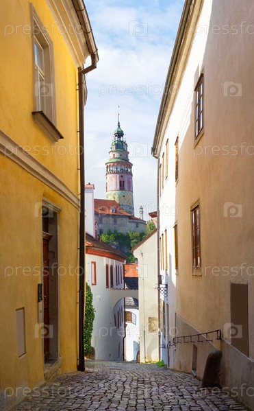 Вид на башню Крумловского замка. Чески-Крумлов, Чехия