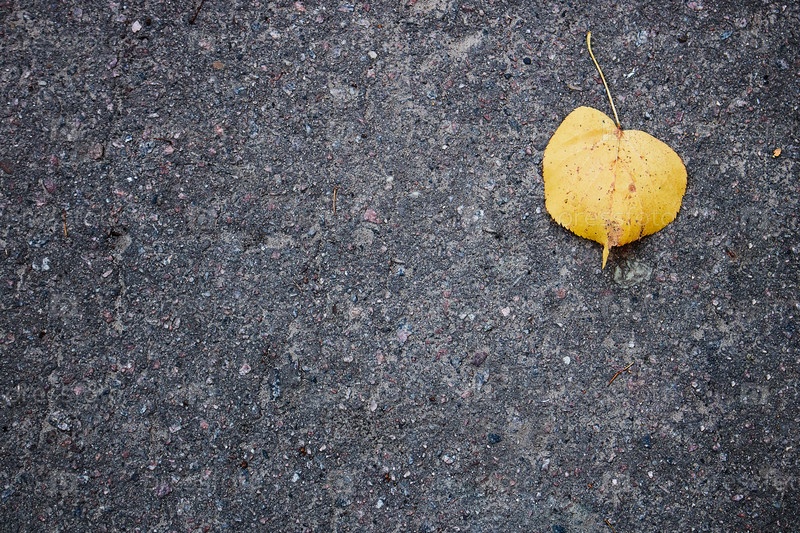 Ровная асфальтированная дорога. Текстура тротуара, вид сверху. Осенний лист на тротуаре. Минимальный осенний фон. Осенний лист фон. Гранжевая текстура. Копировать пространство