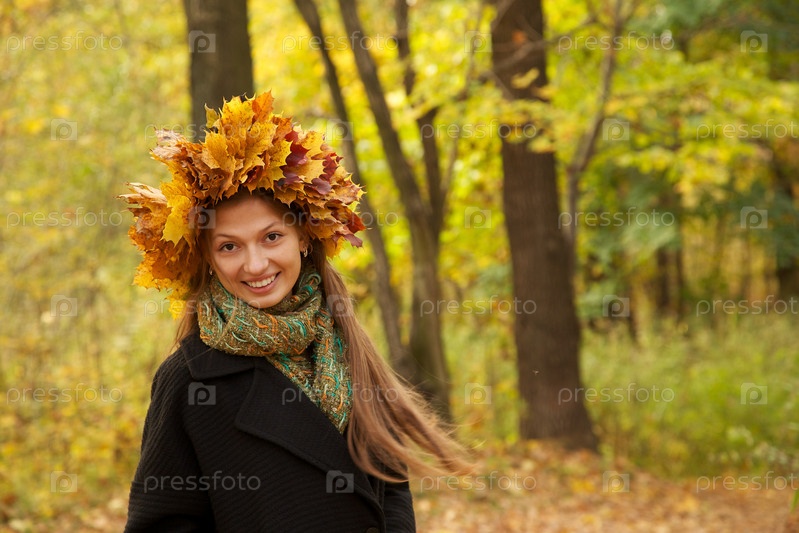 Девушка в короне из желтых листьев