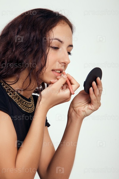 Девушка наносит макияж