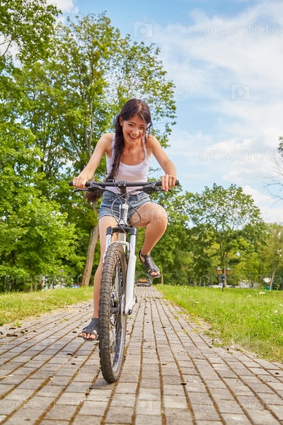 Девушка за рулем на велосипеде