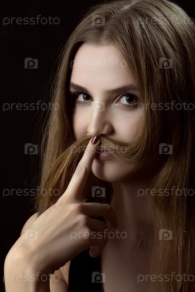 Женщина показывает усы