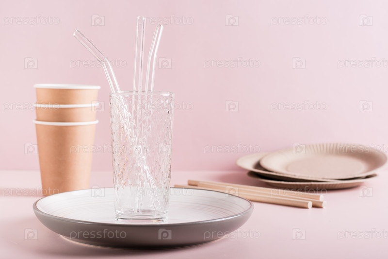 Набор стеклянной и одноразовой бумажной посуды для еды. Ноль отходов