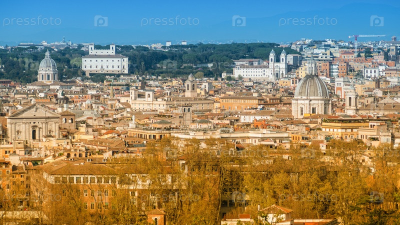 Рим (Италия) - Вид на город с холма Яникул и террасы, с Витториано, церковью Тринита-деи-Монти и дворцом Квиринале