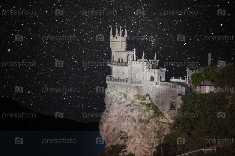 Замок Ласточкино гнездо на скале над Черным морем крупным планом, Крым, Ялта. Одна из самых популярных туристических достопримечательностей Крыма